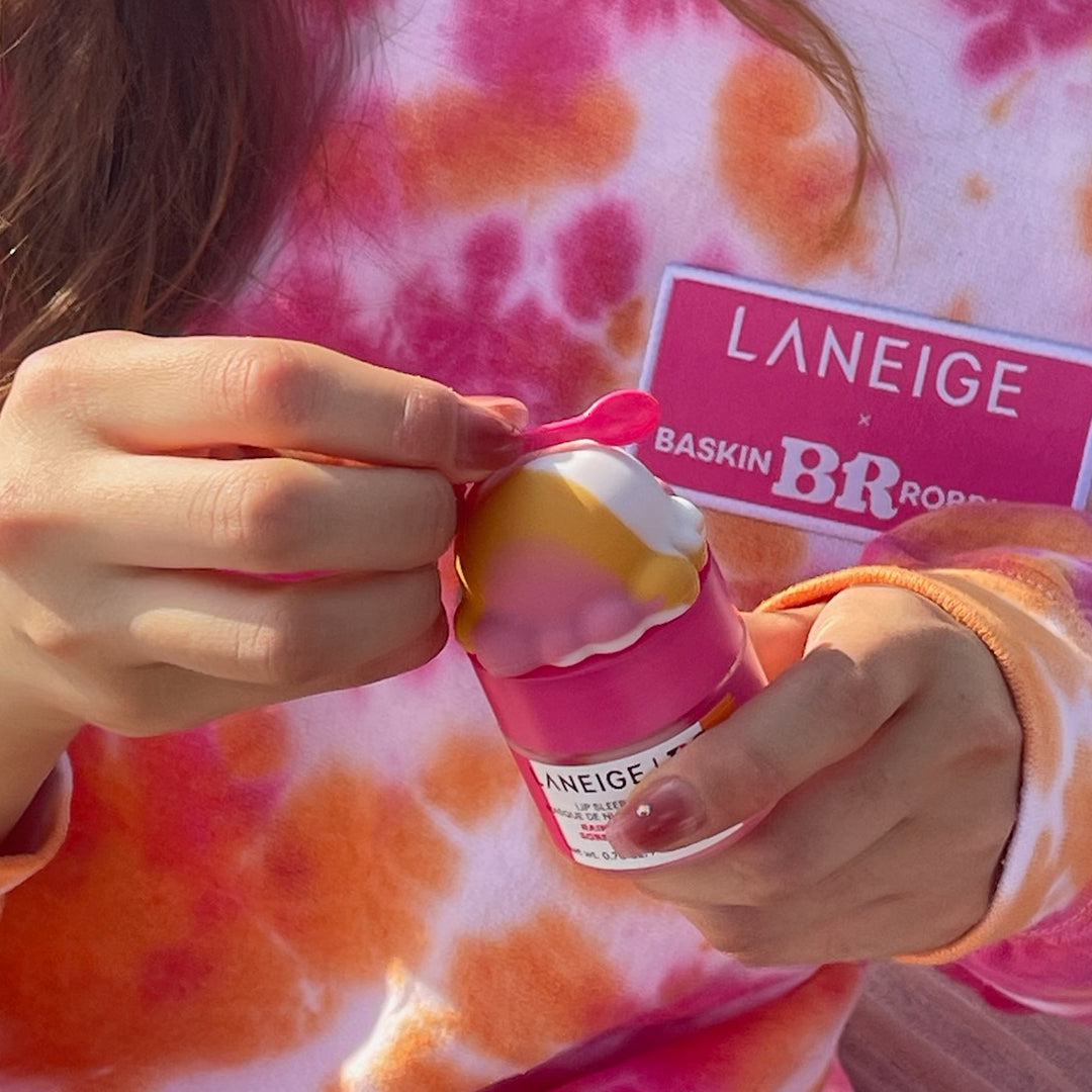 A limited-edition Lip Sleeping Mask topper shaped like a scoop of Baskin-Robbins™ Rainbow Sherbet ice cream. Stick it to the top of your lip mask jar to hold your matching spoon shaped applicator! Exclusively sold online & at the Laneige store at The Grove LA.